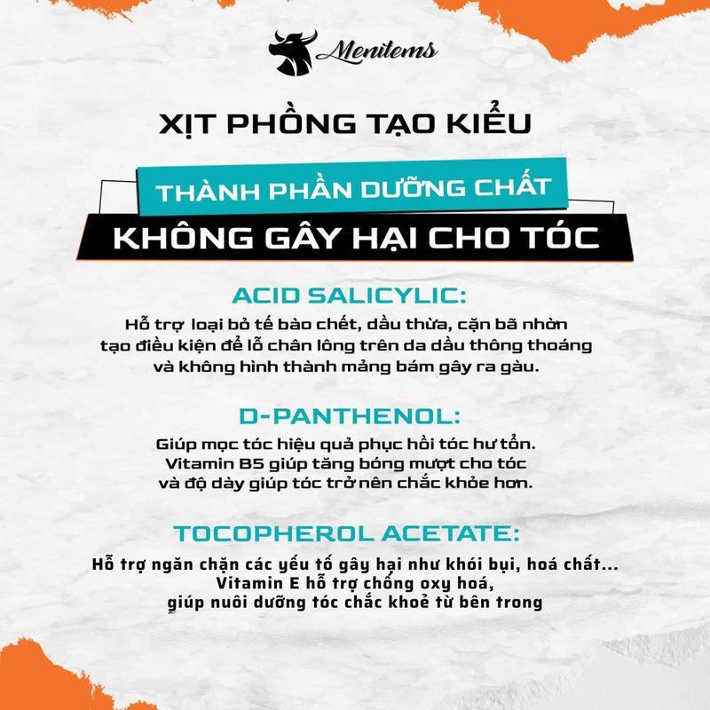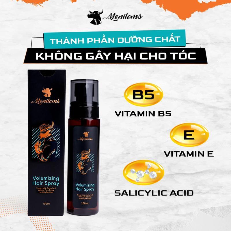 Xịt Phồng Tạo Kiểu Menitems, giúp tạo độ phồng tự nhiên, hỗ trợ giữ nếp, giúp không gây bết tóc 100ML