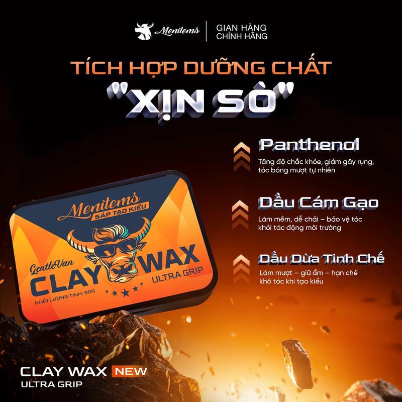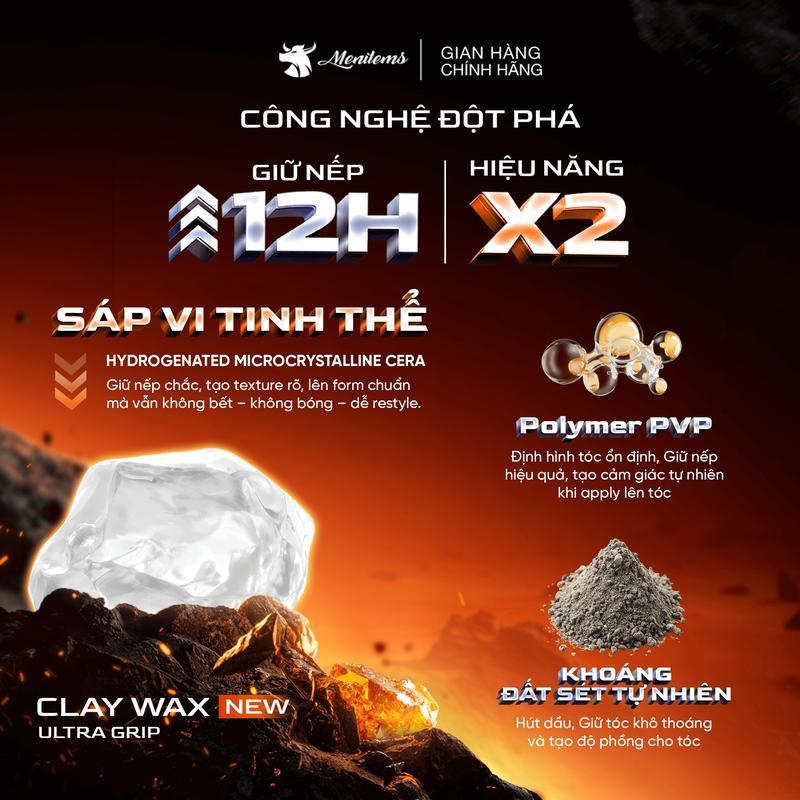 Sáp vuốt tóc nam Menitems Utra Grip 90g, Sáp vi tinh thể Clay Wax hiệu năng cao, giữ nếp tóc tự nhiên